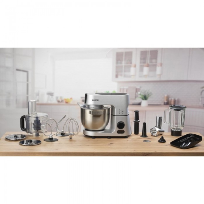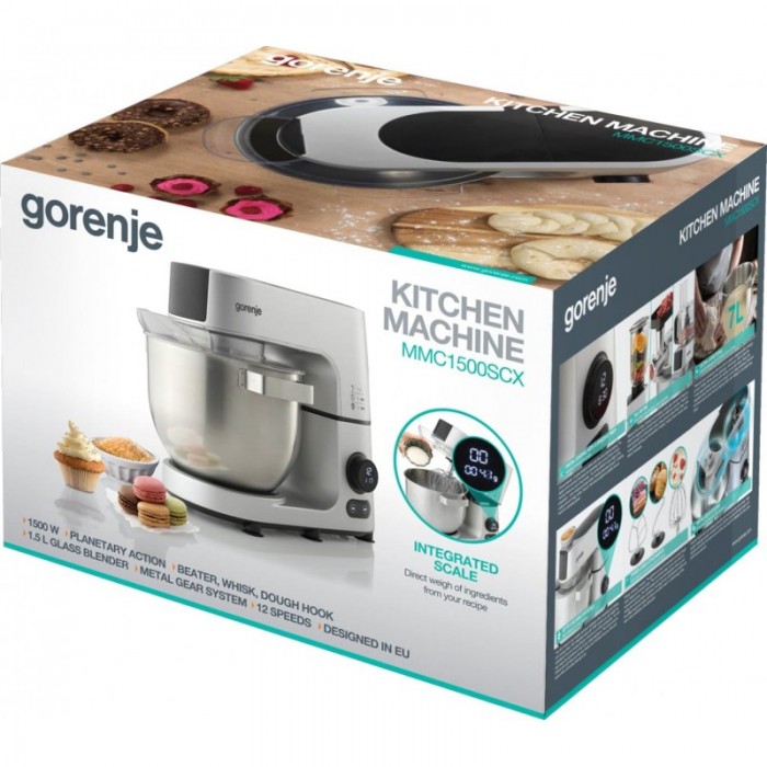 Кухонна, машина, Gorenje, 1500Вт, дисплей, чашаметал, корпусметалпластік, насадок7, сріблястий