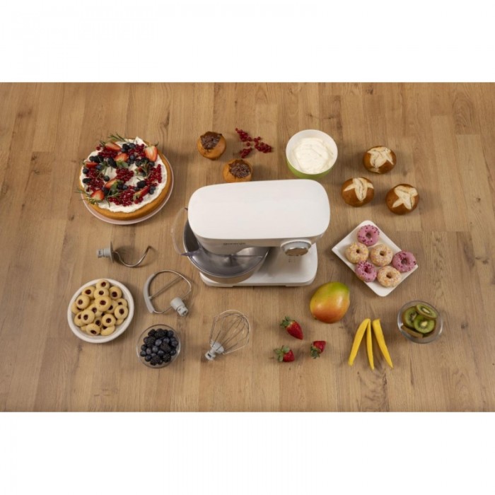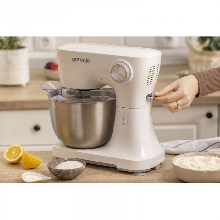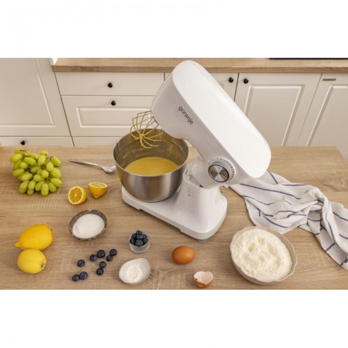 Кухонна машина Gorenje MMC800WS — це універсальний помічник для приготування тіста, кремів і сумішей. Потужність 800 Вт і система 3D змішування забезпечують рівномірне перемішування інгредієнтів. Чаша об’ємом 4,5 л дозволяє готувати великі порції. 12 швидкостей і плавний запуск дають точний контроль процесу. У комплекті є три насадки для різних кулінарних задач.