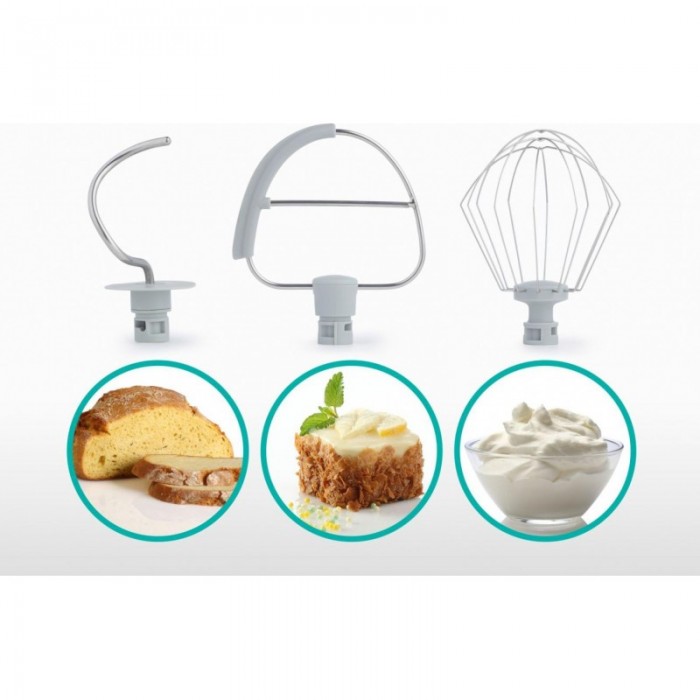 автоматичне регулювання швидкості залежно від бажаної суміші, захисний вимикач, блокування двигуна для додаткової безпеки, закриті деталі двигуна, захисна кришка, зручний отвір у кришці миски для додавання інгредієнтів протягом змішування, легке очищення, знімні частини придатні для миття в посудомийці, 3D змішування відмінно перемішує та збиває інгредієнти, ручка регулювання швидкості, плавний запуск двигуна, захист від перегріву для додаткової безпеки, захист від повторного увімкнення для безпеки на кухні