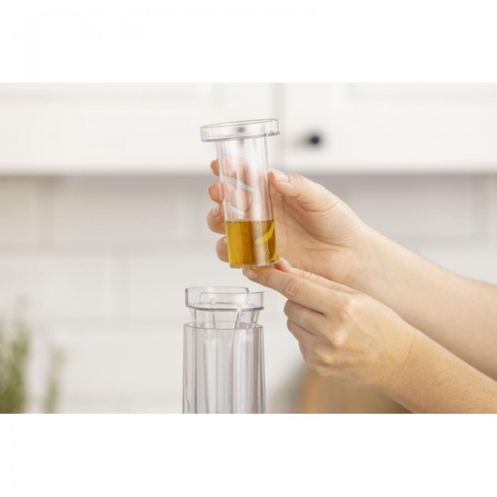 захисний вимикач, ручка регулювання швидкості, підсвічування ручки управління, двигун змінного струму, дисплей, мірні позначки для точного дозування, подвійний ніж подрібнювача, 12 автопрограм, подвійна система блокування (чаша/кришка), технологія Fusion Mode – інноваційний перехід між режимами