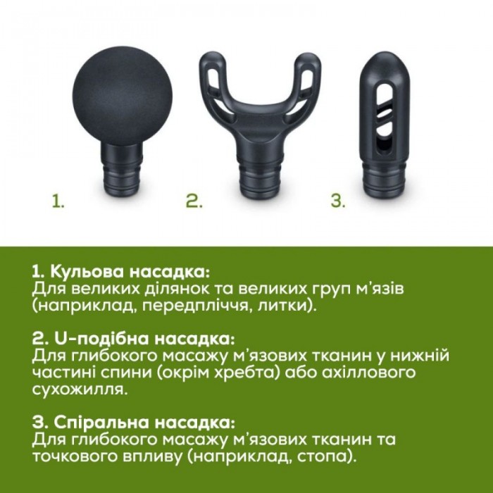 Масажер Beurer для тіла, літій- іонний акум., вага - 0,49кг, 3 насадки, чорний