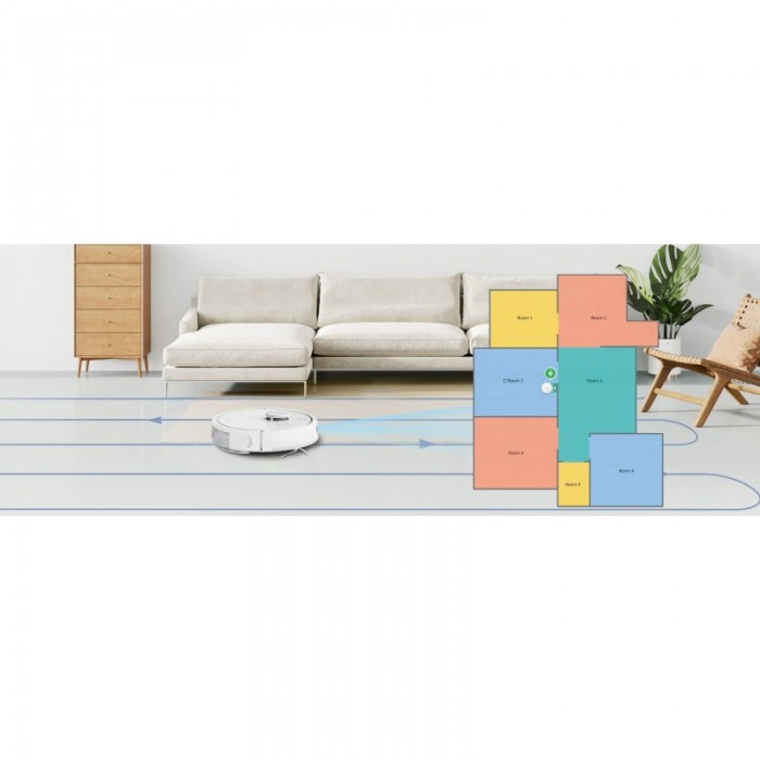 Автоматична постановка на зарядку, Підтримка голосових асистентів, Керування через смартфон, Управління через смартфон, Google Assistant, Amazon Alexa, Wi-Fi, Голосове керування, Вибір території/кімнат для прибирання, система навігації LIDAR, Вибір режиму руху, створення 3D-карти приміщення, Прибирання окремих кімнат, віртуальні стіни, Запам'ятовування поверхів, Автоматичний режим, Побудова карти пересування, PreciSense LIDAR, регулювання подачі води