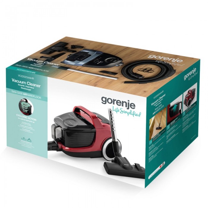 Пилосос, Gorenje, контейнерний, 800Вт, конт, пил, 33л, HEPA, телескоп, трубка, червоний