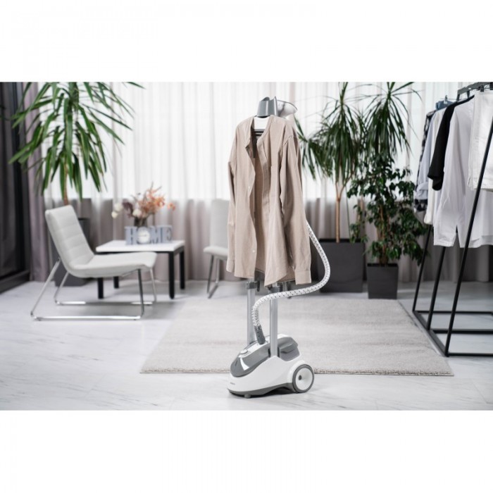Вертикальний відпарювач для одягу IR-S18B – це ефективний помічник із шістьма режимами подавання пари для різних типів тканин. Потужність пристрою становить 1 500–1 800 Вт і зумовлює швидке та якісне прасування. Постійне подавання пари на рівні 37 г/хв, резервуар вміщує 1 800 мл води. Забезпечено готовність до використання всього за 45 с. Оснащено регульованою за висотою стійкою (від 47 до 79 см), поверхнею для прасування, яка обертається на 360°, та термостійким шлангом завдовжки 1,25 м. Підошва відпарювача з нержавіючої сталі. Передбачено захист від перегрівання.