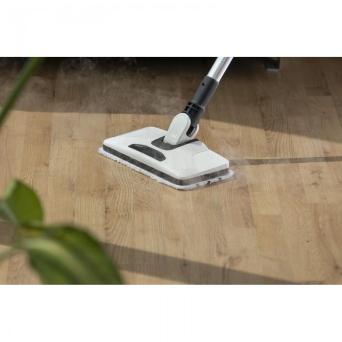 Пароочисник Gorenje SC1506W призначений для очищення підлоги гарячою парою без мийних засобів. Потужність 1500 Вт і тиск пари 0,2 бар дозволяють швидко розм’якшувати та видаляти забруднення. Резервуар на 400 мл і кабель довжиною 5 м роблять пристрій зручним для щоденного використання в квартирах чи будинках середнього розміру. Легка конструкція вагою 2,5 кг полегшує маневрування.