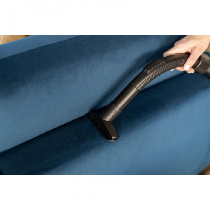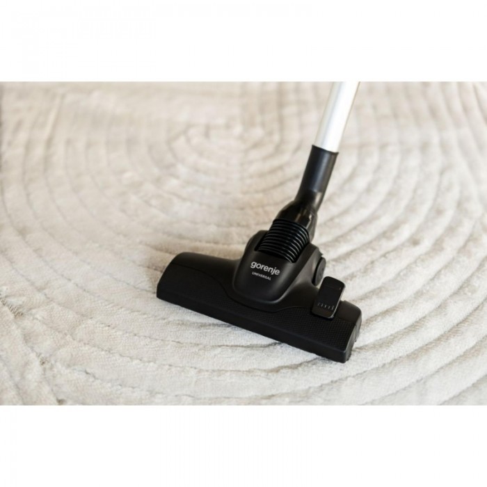 Мішковий пилосос Gorenje створений для стабільного сухого прибирання завдяки потужності 850 Вт та повітряному потоку 28,3 л/с. HEPA-фільтр затримує дрібні частинки, формуючи чистий вихідний потік. Телескопічна трубка з алюмінію та гнучкий шланг полегшують доступ до різних зон приміщення. Індикатор наповнення мішка та сенсорне керування сприяють зручності експлуатації. Для акуратного пересування корпус обладнаний гумовим бампером і колесами.