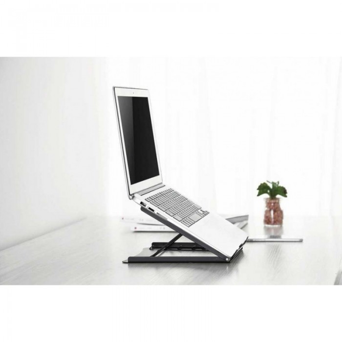 Портативна підставка для ноутбуків Digitus завдяки своєму тонкому дизайну займає мало місця на вашому домашньому столі. Створіть ергономічну та ідеальну робочу станцію для свого ноутбука всього за кілька кроків. Кут нахилу підставки легко регулюється до 5 рівнів, тому її можна адаптувати до будь-якого типу ноутбука чи столу.
