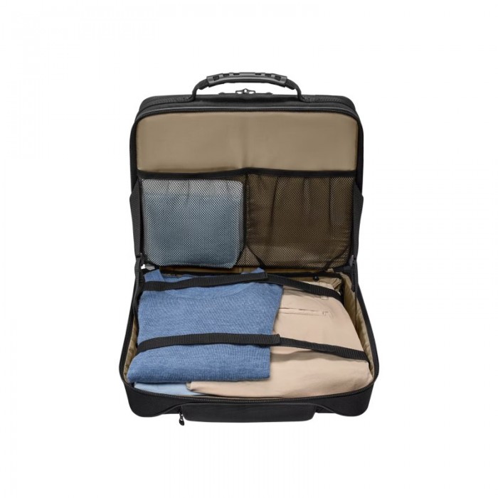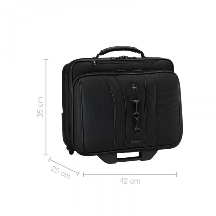 Підвищуйте рівень своїх ділових подорожей із кейс-пілотом Wenger Legacy Black Series. Виготовлений із перероблених матеріалів, він поєднує елегантність, екологічність і функціональність. М’яке відділення з потрійним захистом Triple Protect гарантує безпеку ноутбука до 16". Зручна телескопічна ручка та безшумні колеса забезпечують легке пересування навіть у людних аеропортах. Ідеальний вибір для сучасних професіоналів, що цінують комфорт і стиль.