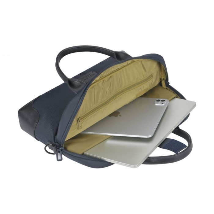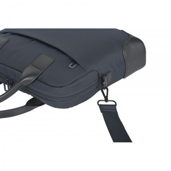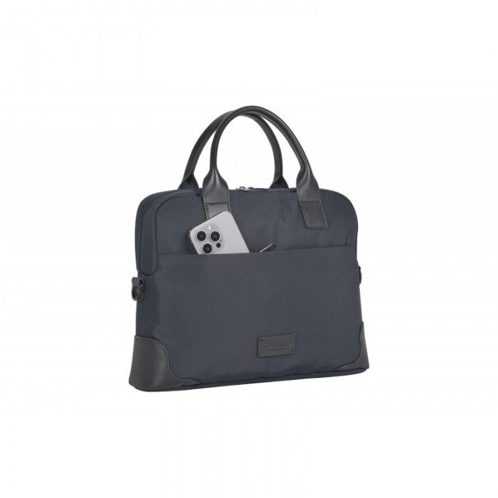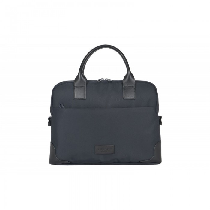 Сумка Tucano Fine 13"/14" поєднує елегантність і функціональність у щоденному використанні. Виготовлена з високотехнологічної тканини з переробленого пластику та оздоблена шкіряними вставками. Має два великі зовнішні відділення й подвійний внутрішній простір для ноутбука, документів і аксесуарів. М’яке відділення захищає лептоп від пошкоджень. Знімний плечовий ремінь забезпечує комфорт під час перенесення.