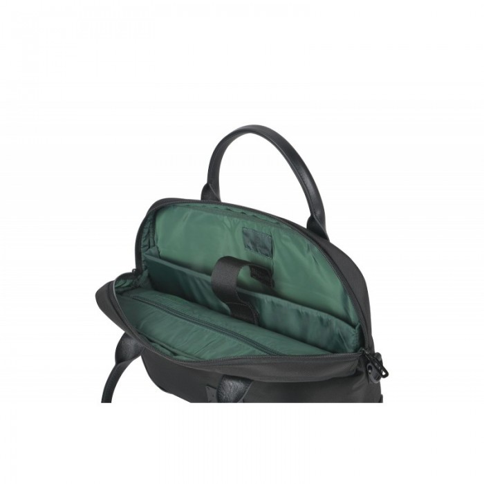 Сумка Tucano Fine 13"/14" поєднує елегантність і функціональність у щоденному використанні. Виготовлена з високотехнологічної тканини з переробленого пластику та оздоблена шкіряними вставками. Має два великі зовнішні відділення й подвійний внутрішній простір для ноутбука, документів і аксесуарів. М’яке відділення захищає лептоп від пошкоджень. Знімний плечовий ремінь забезпечує комфорт під час перенесення.