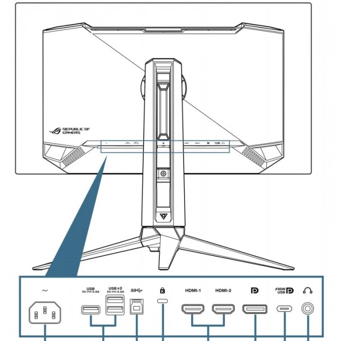 Монітор, Asus, 265, ROG, Swift, PG27UCDM, 2xHDMI, DP, USBC, 3xUSB, QDOLED, 3840x2160, 240Hz, 003ms, DCIP3, 99, FreeSync, Pivot, HDR400