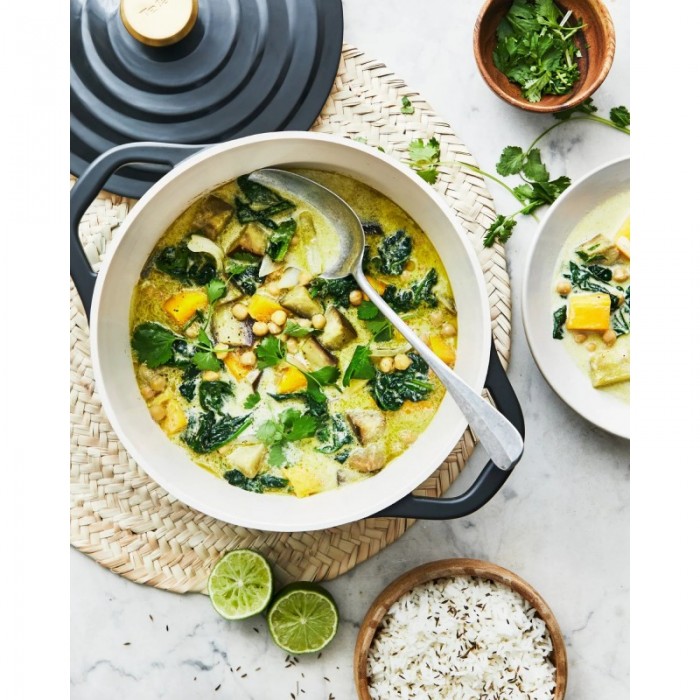 Каструля Tefal Air об’ємом 3,1 л виготовлена з литого алюмінію та має керамічне внутрішнє покриття для зручного щоденного приготування страв. Конструкція значно легша за класичні чавунні моделі, а кришка з конденсаційним ефектом допомагає зберігати соковитість інгредієнтів. Модель сумісна з усіма типами плит, витримує запікання в духовці до 250 °C та підтримує миття в посудомийній машині.
