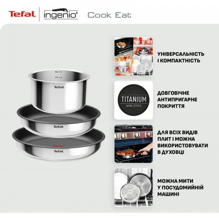 Набір посуду Tefal Ingenio Cook Eat, 4предмети, нержавіюча сталь, бакеліт, сталевий