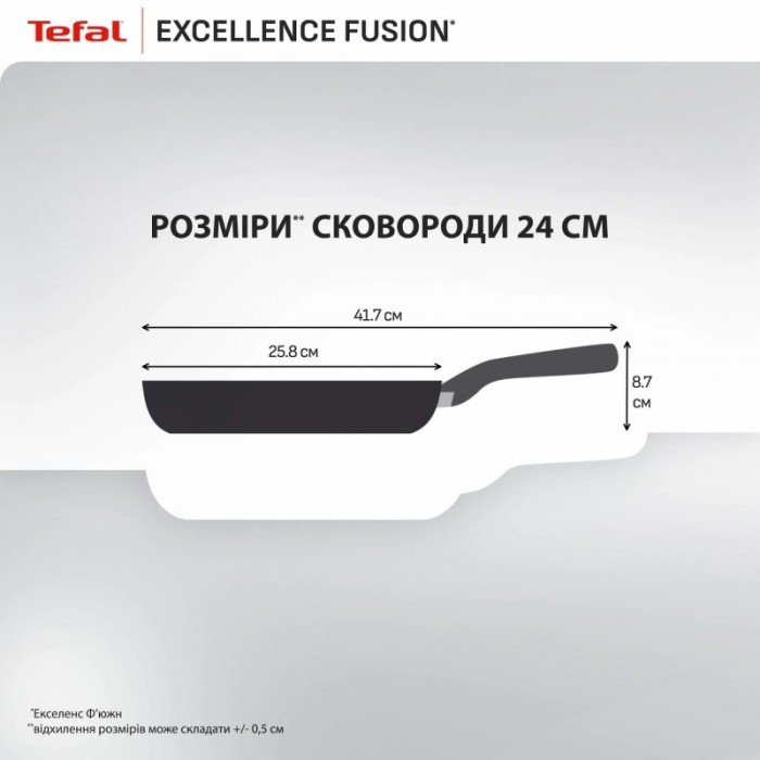 Сковорода, Tefal, Excellence, Fusion24см, алюміній, нержавіюча, сталь, бакеліт, чорний