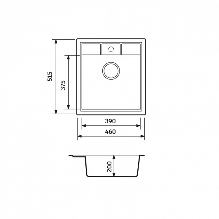 Мийка кухонна Adamant Brick, штучний камінь, квадрат, без крила, 460x515x200мм, чаша - 1, врізна, Avena
