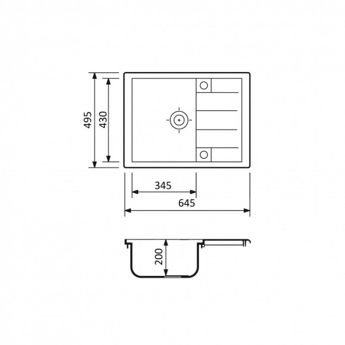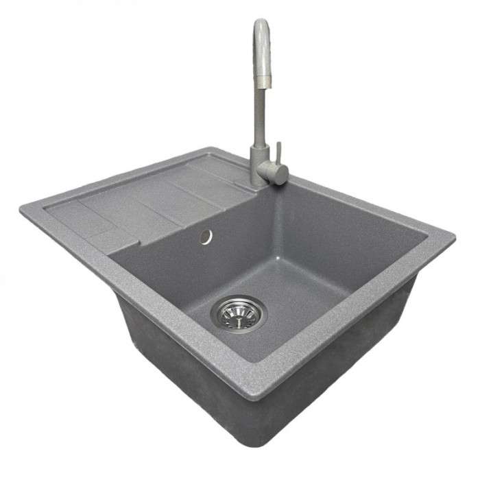 Мийка кухонна Adamant Anila, штучний камінь, прямокут., з крилом, 645х495х200мм, чаша - 1, врізна, сірий