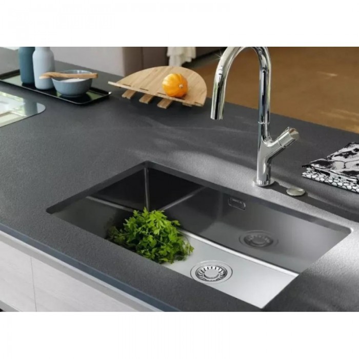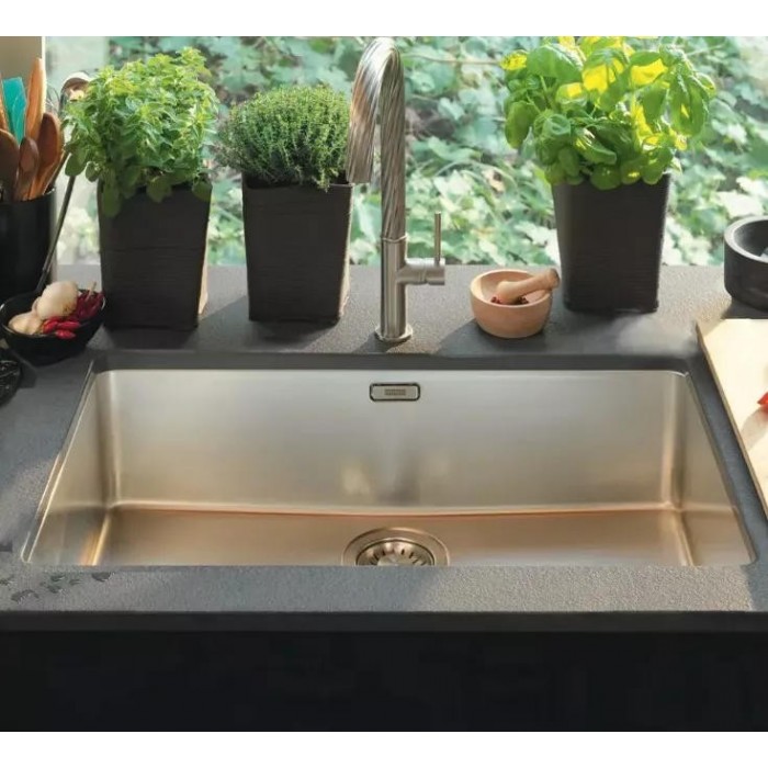 Мийка Franke Maris MRX 110-70 виготовлена з нержавіючої сталі та має сучасну прямокутну форму без крила. Монтаж під стільницю створює мінімалістичний вигляд і зменшує кількість зон, де накопичується забруднення. Велика чаша забезпечує простір для миття габаритного посуду. Ручний зливний клапан працює просто та надійно. Конструкція виконана з AISI 304, що сприяє стійкості до корозії під час щоденного використання.
