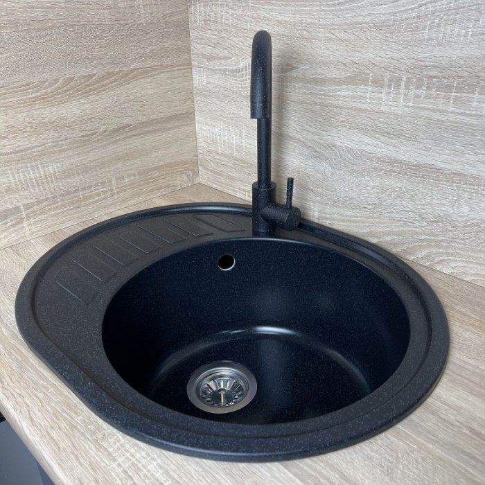 Мийка, кухонна, Adamant, Ovum, штучний, камінь, овальна, з, крилом, 615х495х200мм, чаша, 1, врізна, чорний