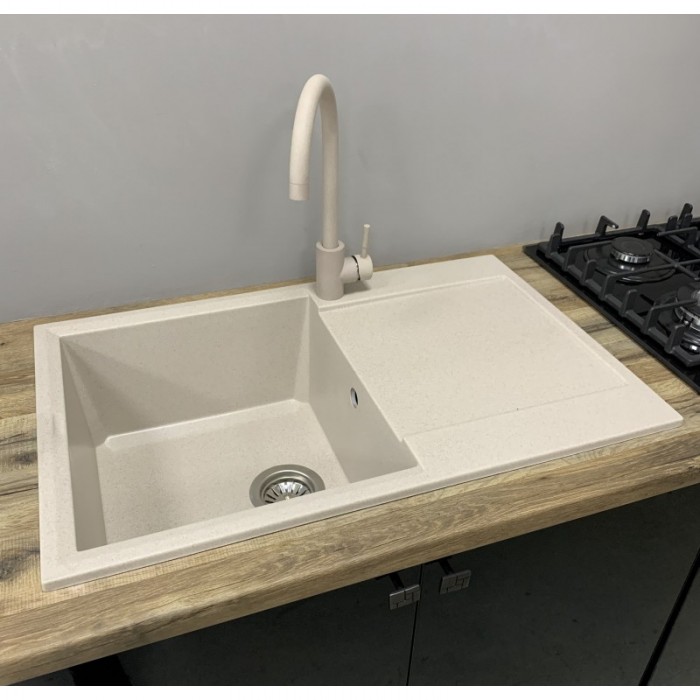 Набір кухонний Adamant Horizon, штучний камінь, прямокут., з крилом, 780х495х230мм, чаша - 1, врізна, Avena + змішувач та дозатор