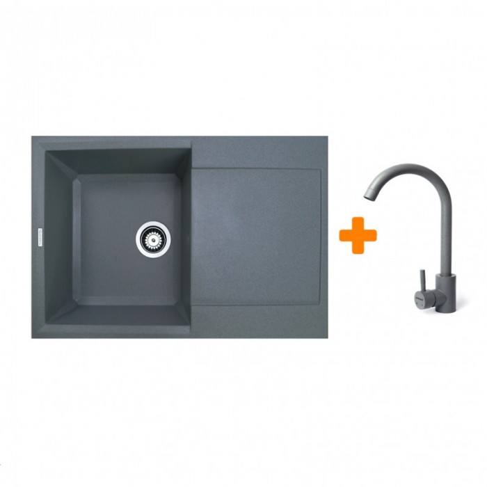 Набір, кухонний, Adamant, Horizon, штучний, камінь, прямокут, з, крилом, 780х495х230мм, чаша, 1, врізна, сірий, змішувач