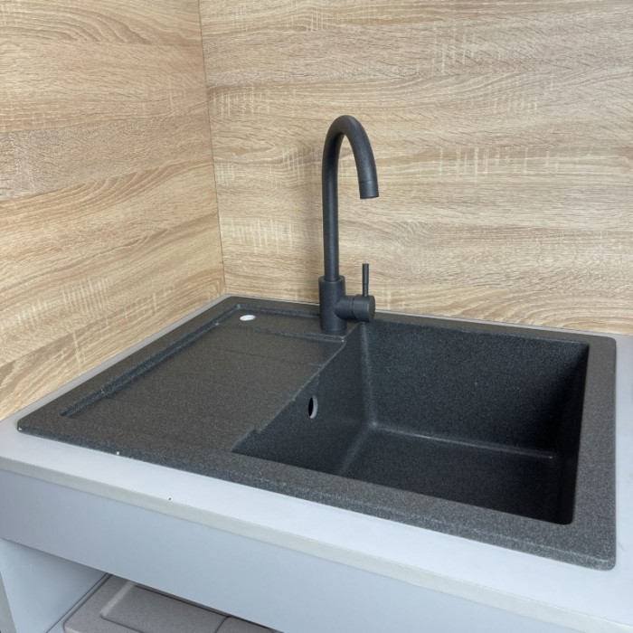 Набір, кухонний, Adamant, Anila, штучний, камінь, прямокут, з, крилом, 645х495х200мм, чаша, 1, врізна, графіт, змішувач, та, дозатор