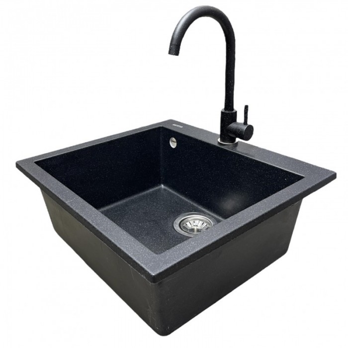 Мийка кухонна Adamant Univer, штучний камінь, квадрат, без крила, 560х500х200мм, чаша - 1, врізна, чорний