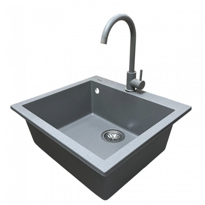 Мийка кухонна Adamant Univer, штучний камінь, квадрат, без крила, 560х500х200мм, чаша - 1, врізна, сірий