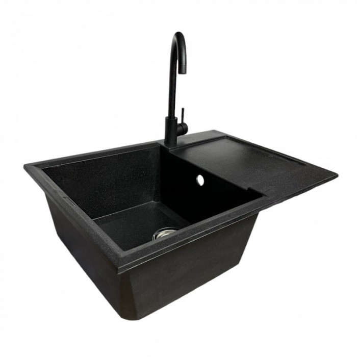 Набір, кухонний, Adamant, Horizon, Medium, штучний, камінь, прямокут, з, крилом, 700х500х230мм, чаша, 1, врізна, чорний, змішувач
