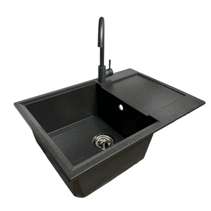 Набір, кухонний, Adamant, Horizon, Medium, штучний, камінь, прямокут, з, крилом, 700х500х230мм, чаша, 1, врізна, графіт, змішувач