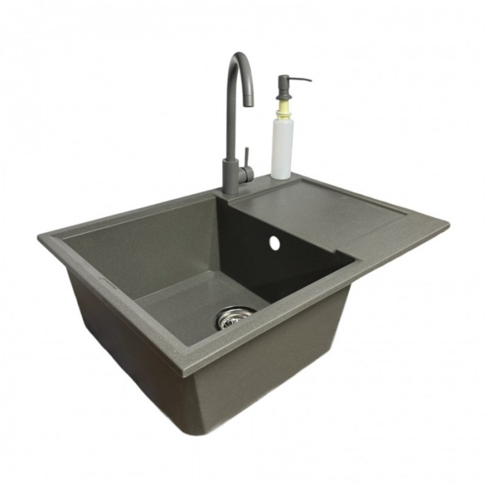 Набір, кухонний, Adamant, Horizon, Medium, штучний, камінь, прямокут, з, крилом, 700х500х230мм, чаша, 1, врізна, сірий, змішувач, та, дозатор