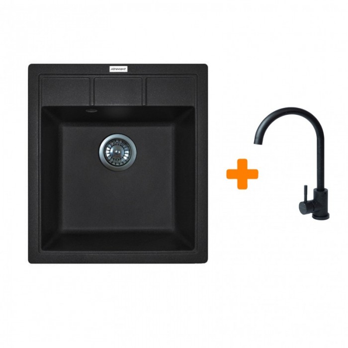 Набір, кухонна, Adamant, Brick, штучний, камінь, квадрат, крила, 460x515x200мм, чаша, 1, врізна, чорний, змішувач