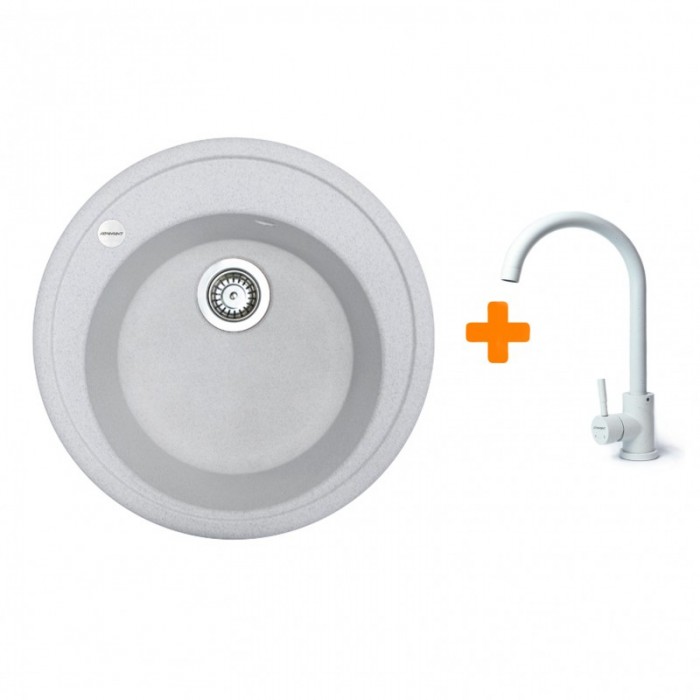 Набір кухонна Adamant Sun, штучний камінь, кругла, без крила, 510x200мм, чаша - 1, врізна, Old stone + змішувач