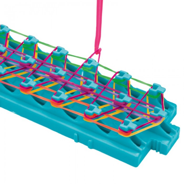 інструкція, 1 станок для плетіння, 1 гачок для плетіння, 800+ різнокольорових резинок (без латексу), 12 підвісок (русалка та єдиноріг), 25 з’єднувальних S-кліпів, з’єднувальні кліпси (25–30 шт. залежно від комплектації), лист об’ємних наклейок