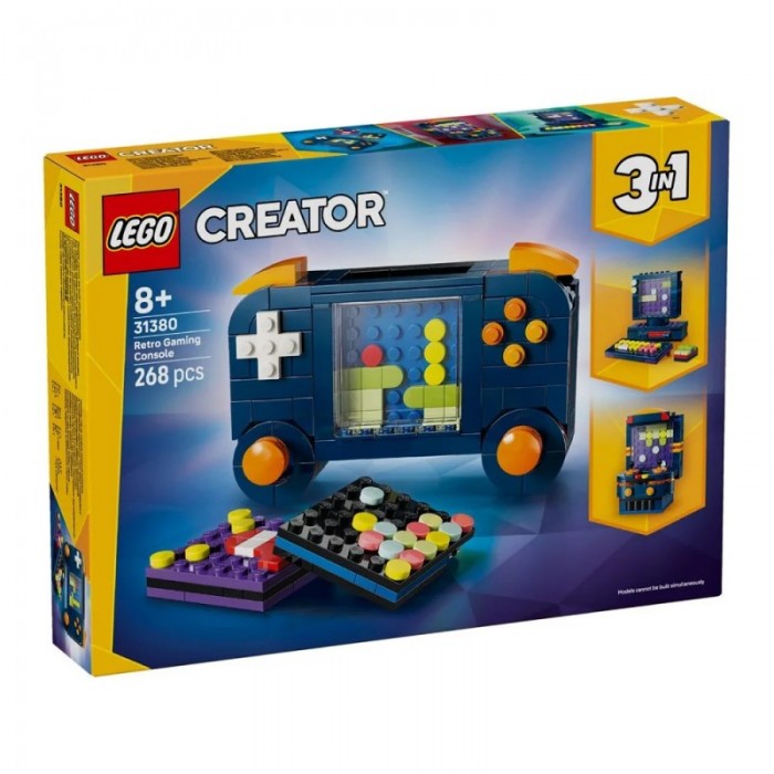 Конструктор LEGO Creator 3 в 1 «Гральна ретро-консоль» — це атмосферний набір для дітей і геймерів від 8 років, який поєднує будування, гру та демонстрацію. Один набір деталей відкриває три різні варіанти побудови, натхненні класичною ігровою технікою, що викликає приємні ностальгічні асоціації. Кожен варіант має виразний вигляд і добре сприймається як елемент декору кімнати геймера. Формат LEGO Creator 3 в 1 підтримує розвиток уяви, просторового мислення та інтерес до техніки. Додаток LEGO Builder робить процес складання зрозумілим завдяки 3D-інструкціям із можливістю обертання моделей і збереження прогресу. У наборі 268 деталей. Моделі збираються почергово.