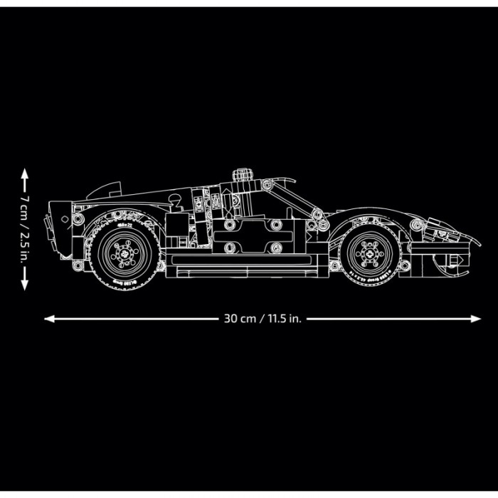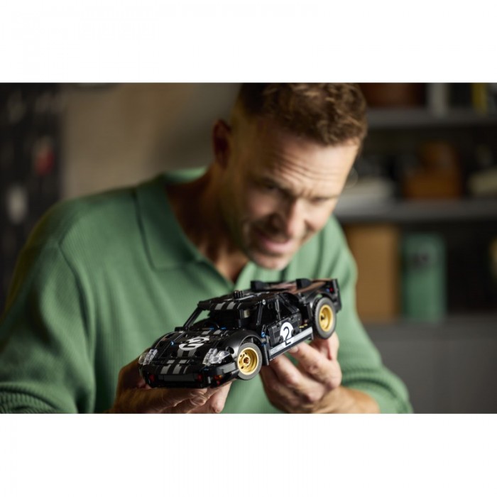 Досягайте перемог і вшановуйте легенду автоспорту з моделлю для дорослих LEGO® Technic Автомобіль для перегонів Ford GT40 MKII 1966 року (42223). Любителі автомобілів, фанати перегонів і завзяті будівельники віком від 18 років можуть відчути дух найпрестижніших у світі перегонів на витривалість завдяки цій реалістичній версії моделі культового ретроавтомобіля. Із задоволенням досліджуйте деталізовані особливості набору. Для кермування використовуйте ручку зверху автомобіля. Роздивіться двері, що відчиняються, та помилуйтеся чорно-срібною лівреєю, натхненою справжнім чемпіонським автомобілем.