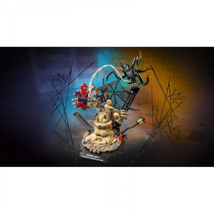 Втіли фільм про Людину-павука 3 від Marvel Studios у життя з набором LEGO® ǀ Marvel Epic Battle: Spider-Man vs. Sandman (76334) для дітей, хлопчиків та дівчаток віком від 9 років. Він містить 3 культові мініфігурки – Людину-павука, Венома та Sandman – для епічних рольових пригод та мега-можливостей для демонстрації. Набір містить зоряний склад персонажів з фільму та безліч інтерактивних елементів: Людина-павук спускається з вежі на павутинному канаті; Sandman піднімається з-під завалів за допомогою величезної руки; а Веном атакує 4 рухомими щупальцями.