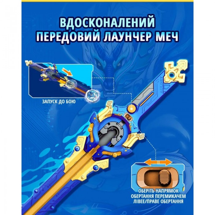Infinity Nado VI серії Proskill Pack – дзиґа нового VI покоління зазнала значних вдосконалень, завдяки яким подарує незабутні враження від ще більш видовищних і цікавих поєдинків. Абсолютно нова система запуску дзиґи на арену реалізована за допомогою епічного лаунчера у формі меча, пускова система якого забезпечить контрольований швидкісний старт.