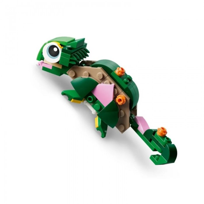 LEGO Creator 31377 — це милий набір 3 в 1 для дітей від 7 років, який дозволяє зібрати черепаху з рухомою головою, ротом та красивою рожевою квіткою водяної лілії. З тих самих 124 деталей можна перебудувати модель на хамелеона з рухомим хвостом і головою або жабу з відкриваючим ротом. Це чудовий спосіб розвивати уяву, грати в історії про тварин та прикрашати кімнату після гри. Додаток LEGO Builder з 3D-інструкціями робить процес складання ще цікавішим і простішим. Ідеальний подарунок для любителів тварин та творчих ігор.