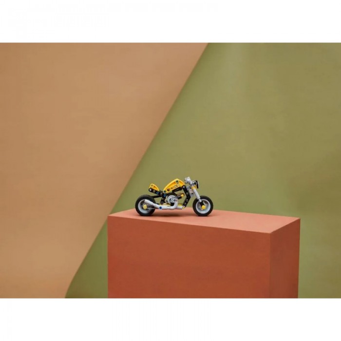Конструктор LEGO Technic Yellow Motorcycle 42225 — компактний набір для знайомства з базовими механізмами мотоциклів. Під час складання модель отримує кермо й працюючий 3-циліндровий двигун, пов’язаний із заднім колесом ... Read more...