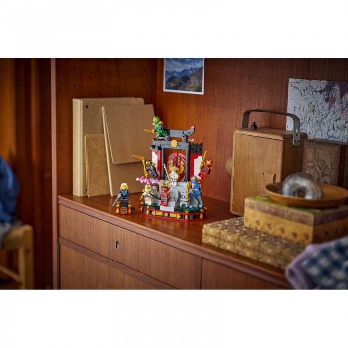 Хлопчики, дівчатка та ностальгічні шанувальники ніндзів віком від 14 років можуть відсвяткувати 15-ту річницю серіалу LEGO® NINJAGO® за допомогою набору «Модель персонажів ніндзя. 15-та річниця» (71866), що містить 8 мініфігурок. Цей чудовий іграшковий монастир ніндзів має сходи, ворота, що відчиняються, кам'яний ліхтар, вишневе дерево в цвіту та чайну кімнату позаду з наліпками, що зображують знамениту битву NINJAGO.