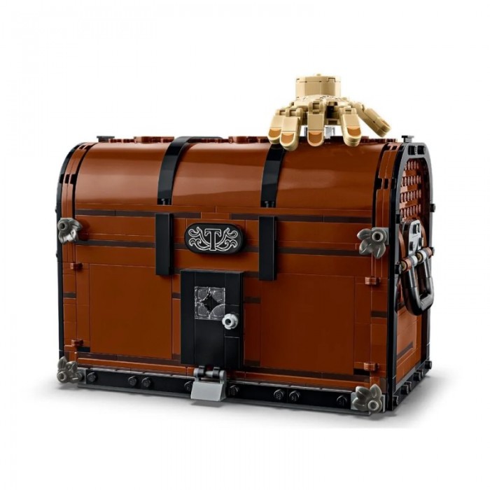 Конструктор LEGO Wednesday «Квартира Речі» 76785 представляє компактну будівлю-схованку у формі сундука, що відкривається для гри та демонстрації. Модель містить 828 деталей та включає фігурки Речі й Енід Сінклер для сюжетної взаємодії. Усередині приховані інтерактивні елементи — ліжко, крісло та аксесуари, що розширюють сценарії гри. Закритий сундук із декоративними деталями чудово вписується на полиці як декор.