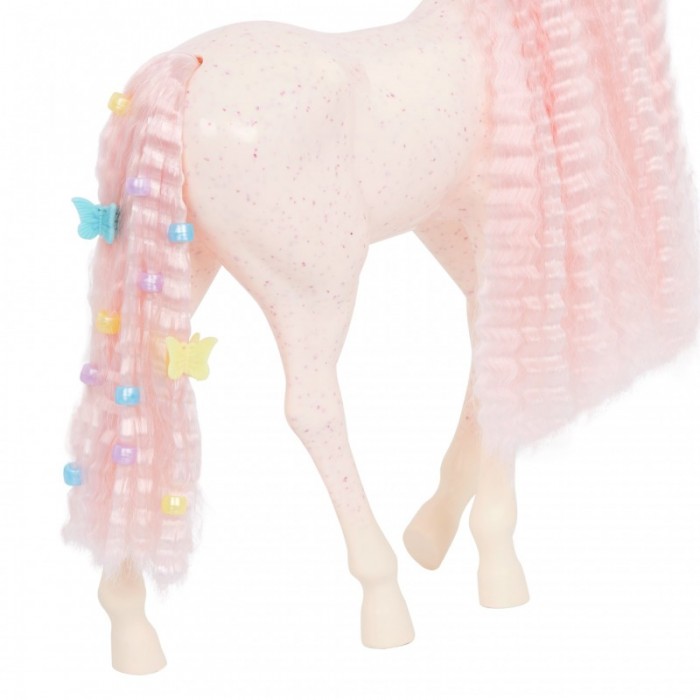 лялька, пара взуття, нижня білизна, резинка для волосся, комбінезон, лоша, 12 намистин для волосся, щітка для волосся, 2 кліпси-метелики, 2 картки з ідеями для зачісок