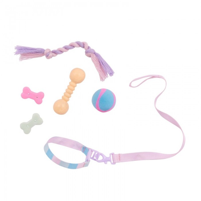 лялька, пара взуття, нижня білизна, м'ячик, топ, мотузка, шубка, штани, цуценя, повідець і нашийник, 2 ласощі для собак, іграшка для собаки