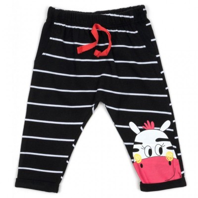 • Штанці чорного кольору в білу смужку, з низькою посадкою під підгузник, на еластичному поясі з широкою гумкою всередині. Шнурок декоративний.